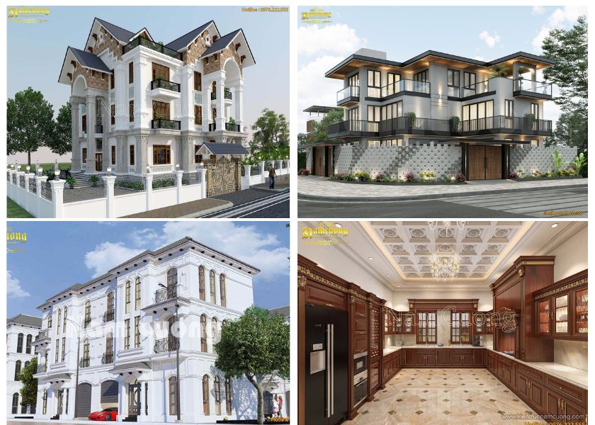 - Biệt thự tân cổ điển: Kết hợp tinh tế giữa nét cổ điển châu Âu và hơi thở hiện đại, phù hợp với gia chủ yêu thích vẻ đẹp tinh xảo.