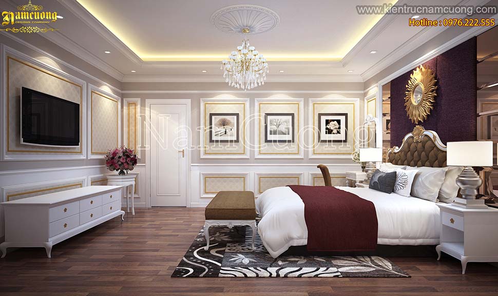 Về nội thất, biệt thự thể hiện tinh thần phóng khoáng, phá vỡ những khuôn mẫu cứng nhắc thường thấy. Mỗi chi tiết đều thể hiện được dấu ấn tinh tế của phong cách kiến trúc tân cổ điển cùng nét độc đáo riêng của gia chủ.