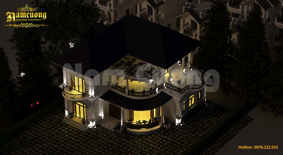 Những đường nét đăng đối, cùng hệ phào chỉ uốn lượn mềm mại, được nhấn mạnh ở đầu cột và khu vực ban công, giúp công trình trở nên cuốn hút và nổi bật giữa không gian xung quanh.
