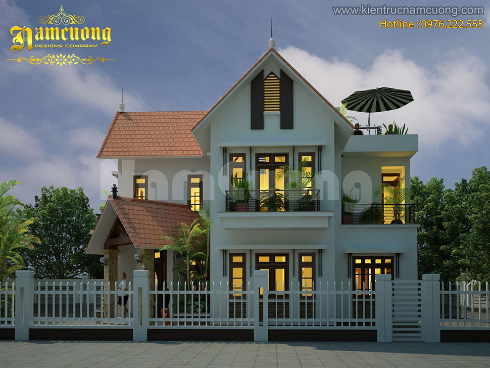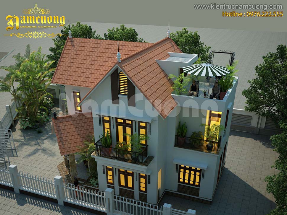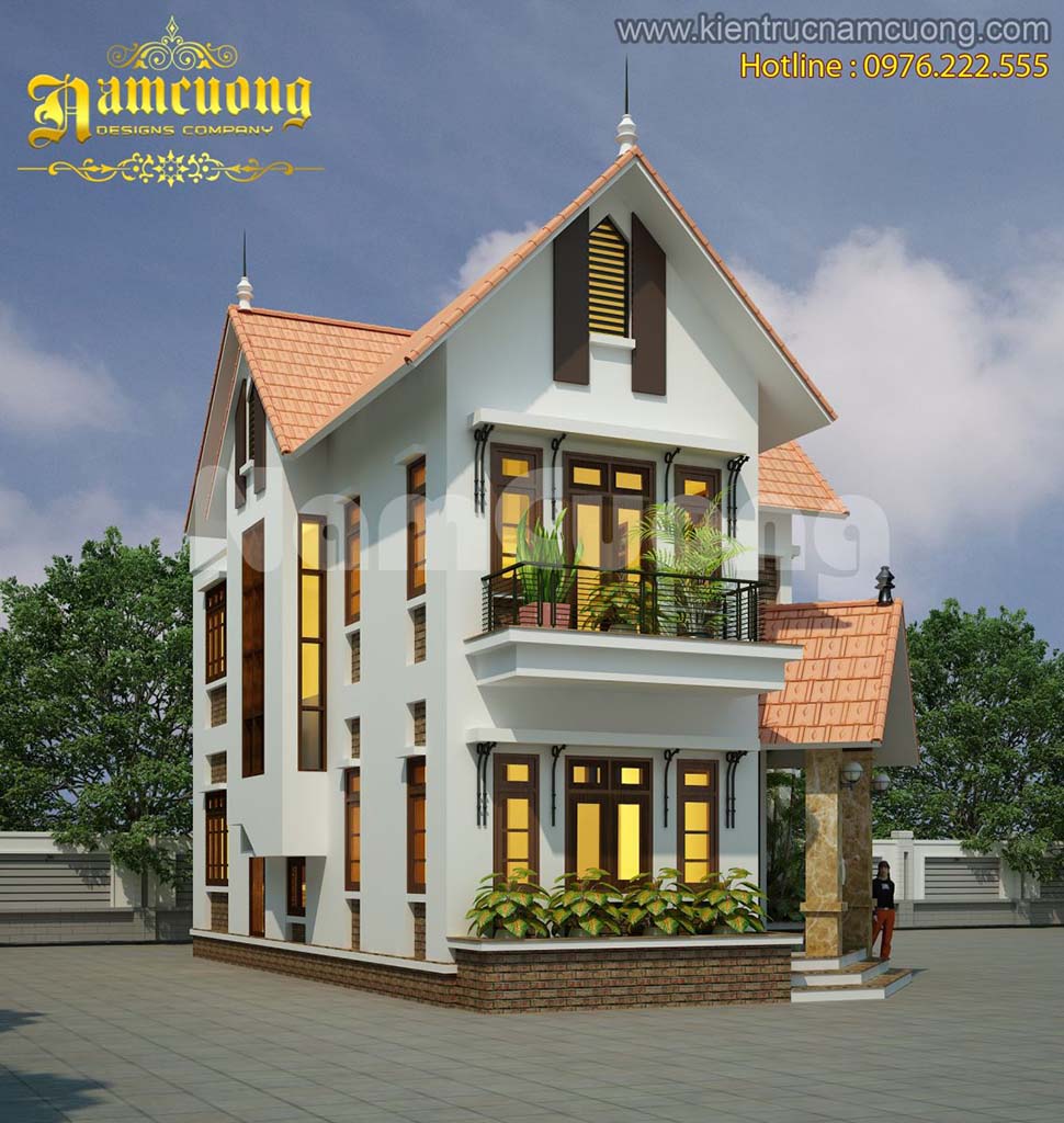 Tiếp theo, Kiến trúc Nam Cường xin được giới thiệu đến các bạn bản Thiết kế biệt thự 3 tầng chữ L ngói đỏ rực rỡ tại Quảng Ninh- của chủ đầu tư anh Định- BT1302.