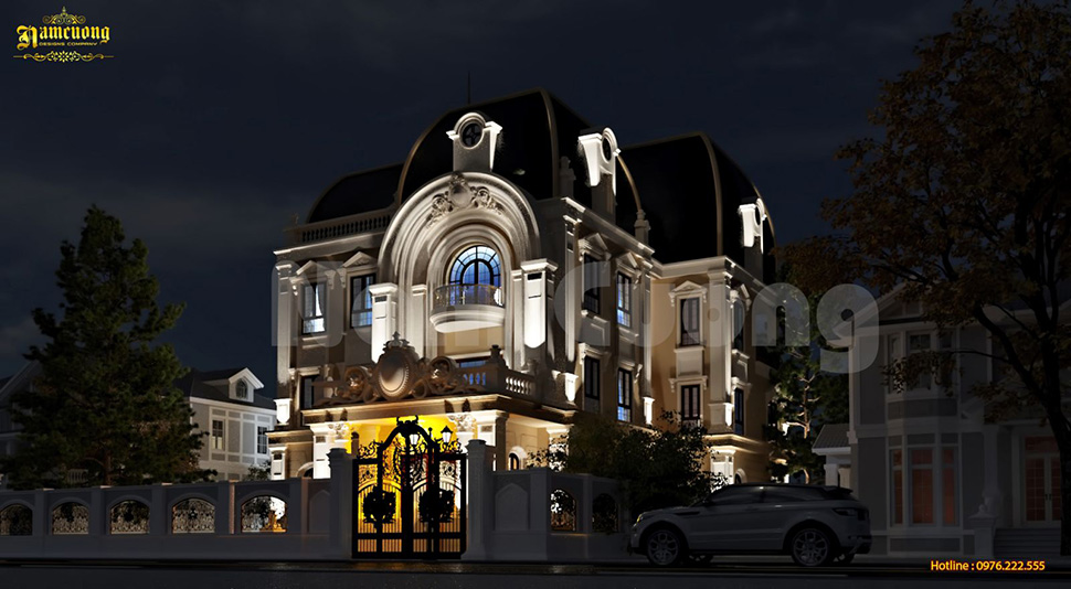 Biệt thự lâu đài 4 tầng phong cách Châu Âu – đặc biệt là kiến trúc Pháp mang vẻ đẹp lãng mạn, thanh lịch nhưng vẫn vô cùng bề thế. Điểm nổi bật của phong cách này là tỷ lệ kiến trúc chuẩn mực, mái Mansard đặc trưng, ban công sắt mỹ thuật và hệ cửa vòm cao rộng.