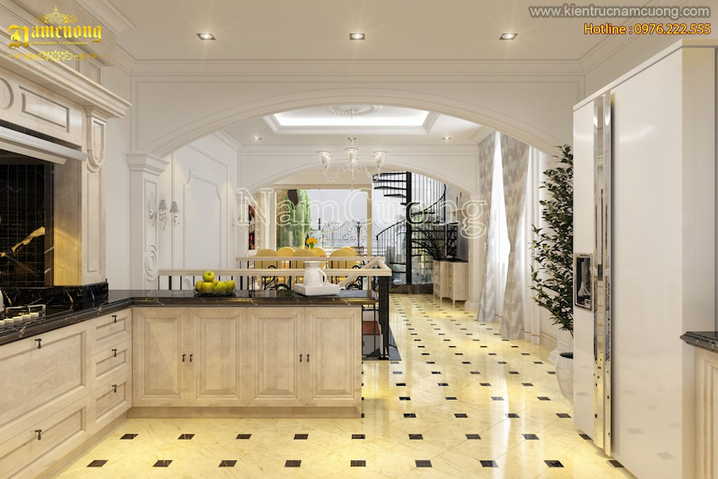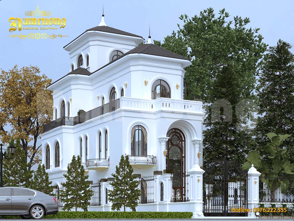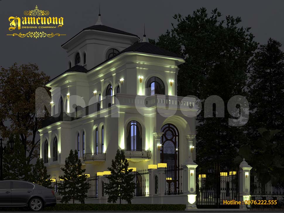 Mặc dù với mặt tiền hạn chế, chỉ 6m nhưng Kiến trúc Nam Cường đã tối ưu tạo nên một không gian ấn tượng cho mẫu biệt thự lâu đài. Dòng biệt thự này phù hợp gia chủ yêu thích sự bề thế và khác biệt. Thiết kế cần xử lý tinh tế về tỷ lệ, tránh lạm dụng chi tiết để phù hợp với bề ngang 6m và vẫn thể hiện được sự đồ sộ của công trình.