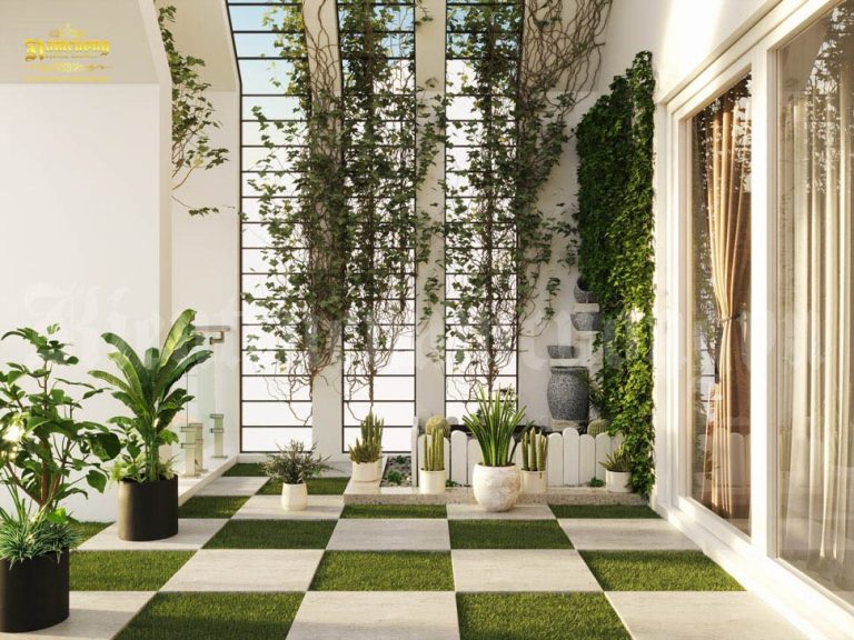 Ngoài ra, tầng tum còn có thể bố trí sân phơi, khu giặt đồ hoặc một góc thư giãn nhỏ với cây xanh, bàn trà. Đối với một số mẫu nhà ống 2 tầng 1 tum, gia chủ còn tận dụng tầng tum làm phòng làm việc hoặc phòng ngủ phụ, đáp ứng nhu cầu sử dụng đa dạng mà không cần mở rộng diện tích xây dựng.