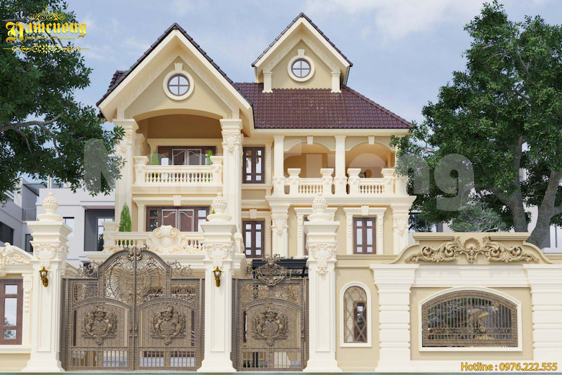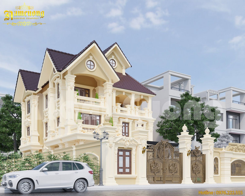 Mẫu thiết kế biệt thự 150m2 cổ điển này gây ấn tượng bởi tính đối xứng, chi tiết trang trí cầu kỳ và hình khối bề thế. Kiến trúc thể hiện rõ vị thế và đẳng cấp của gia chủ. Tuy nhiên, phong cách này đòi hỏi tỷ lệ chuẩn và chi phí đầu tư cao. Phù hợp gia đình có tiềm lực tài chính và yêu vẻ đẹp quyền quý.