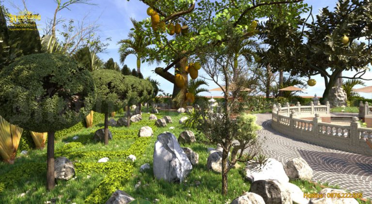 Cảnh quan sân vườn cũng là một yếu tố cần được quan tâm khi thiết kế biệt thự 1 tầng. Tùy vào mức độ đầu tư, diện tích khu đất mà chủ đầu tư xây dựng cảnh quan và các hạng mục như gara, hồ bơi, hòn non bộ… phù hợp. Từ đó tạo nên nét đẹp cân đối hài hòa, kiến tạo không gian sống trong lành.