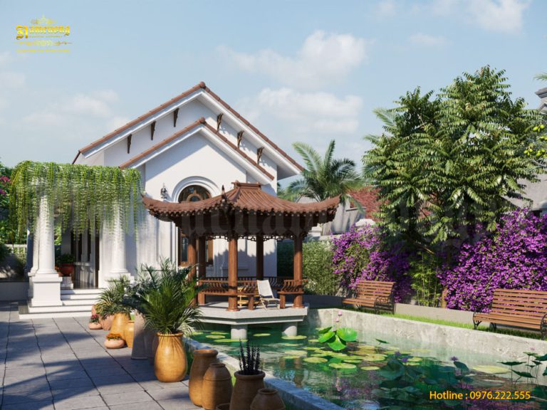 Để đáp ứng nhu cầu sống gần gũi với thiên nhiên, nhóm kiến trúc sư đã thiết kế một mẫu biệt thự vườn theo phong cách mở. Thiết kế này kết hợp hồ cá rộng, không chỉ có chức năng điều hòa không khí tự nhiên cho toàn bộ ngôi nhà mà còn mang lại giá trị thẩm mỹ, làm nổi bật vẻ đẹp độc đáo và sáng tạo của chủ sở hữu.