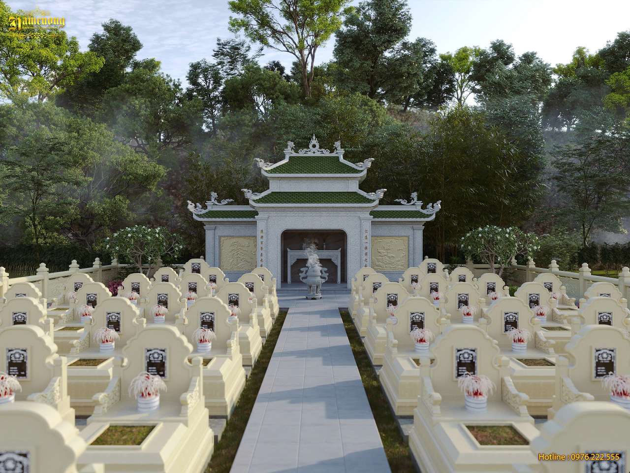 Trên đây là bản thiết kế lăng mộ gia đình quy mô lớn mà Kiến Trúc Nam Cường đã hoàn thành cho gia đình chị Trang tại Hải Phòng. Với diện tích 460m2, công trình được bố cục khoa học, đảm bảo đầy đủ các yếu tố phong thủy và thẩm mỹ, tạo nên một không gian tâm linh trang nghiêm, yên bình cho dòng họ.
